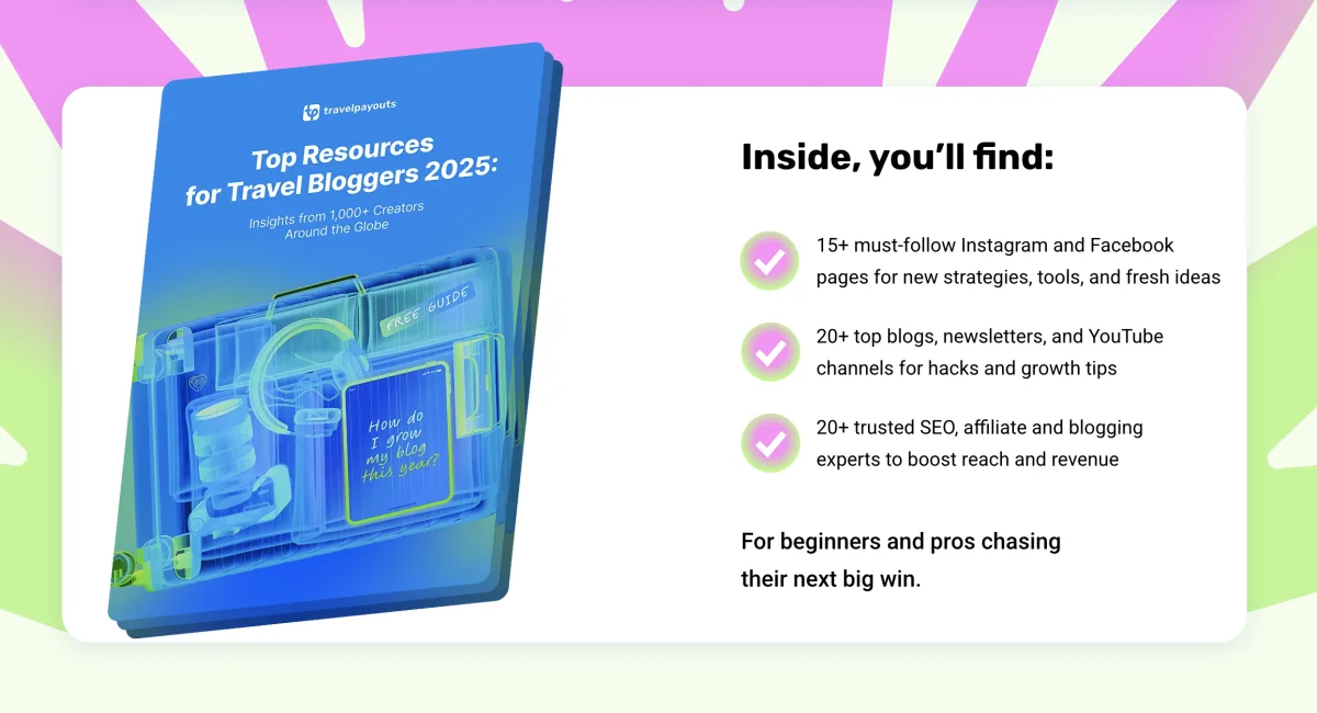 We’re Travelpayouts, and nothing makes us happier than helping travel creators grow and thrive. Recently, we surveyed over 1,000 travel bloggers across the globe about their favorite resources to learn, improve, and stay inspired. Now we’ve turned thei... show more