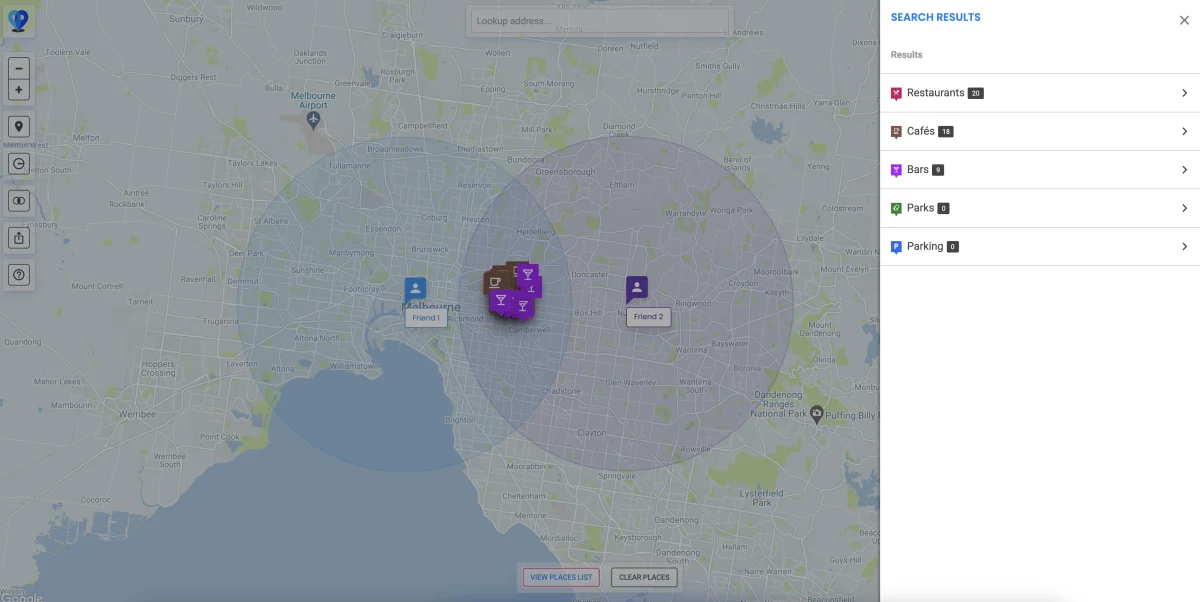 Find locations in your city to meet with friends