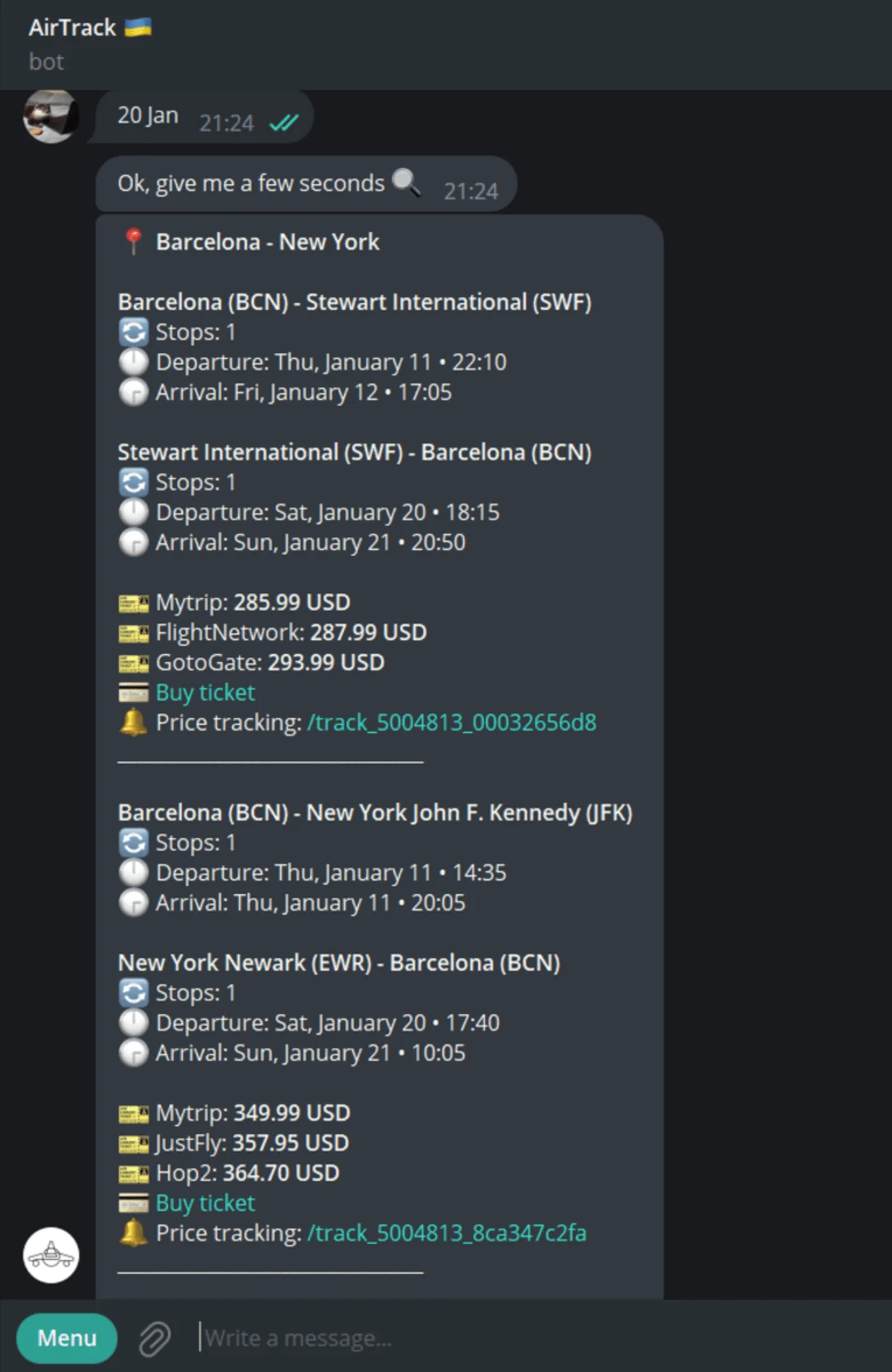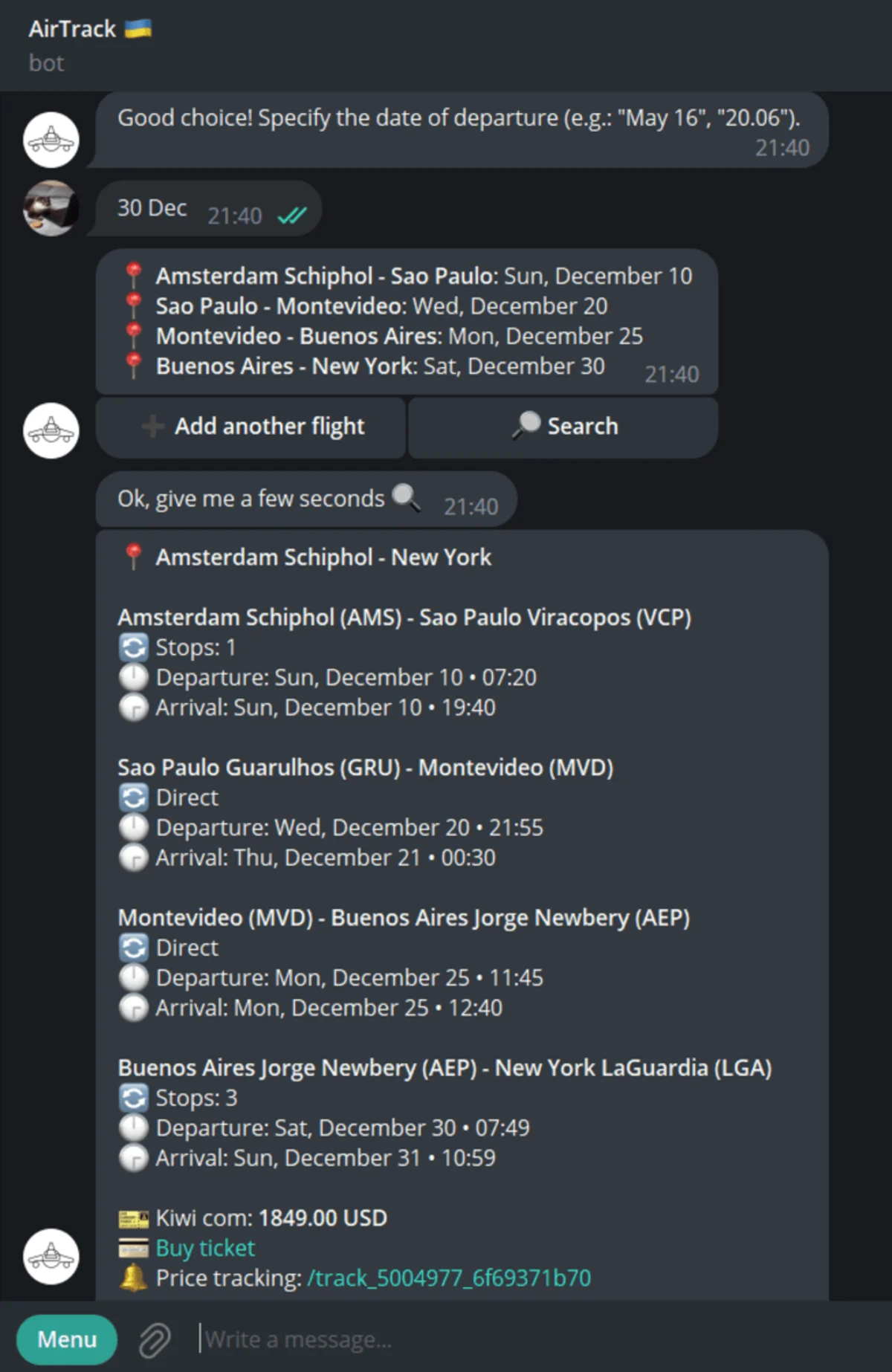 Find cheap flights and get price alerts right on Telegram