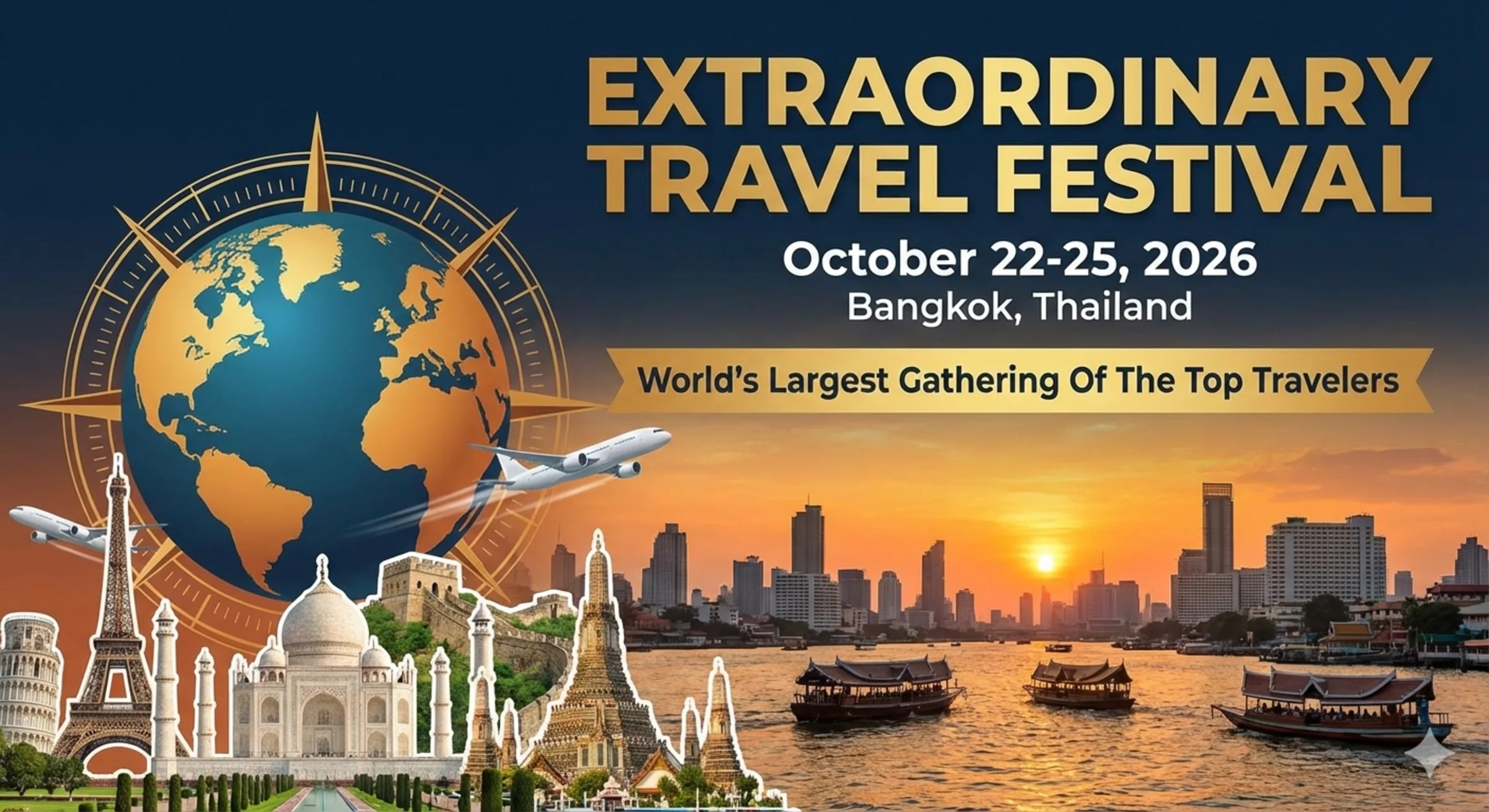 Join us in Bangkok, Thailand from October 22-25 for The Extraordinary Travel Festival 3rd edition and meet with the world's most accomplished travelers for 4 days of keynotes, panels, workshops, and networking that shines a spotlight on extraordinary travel and adventures.