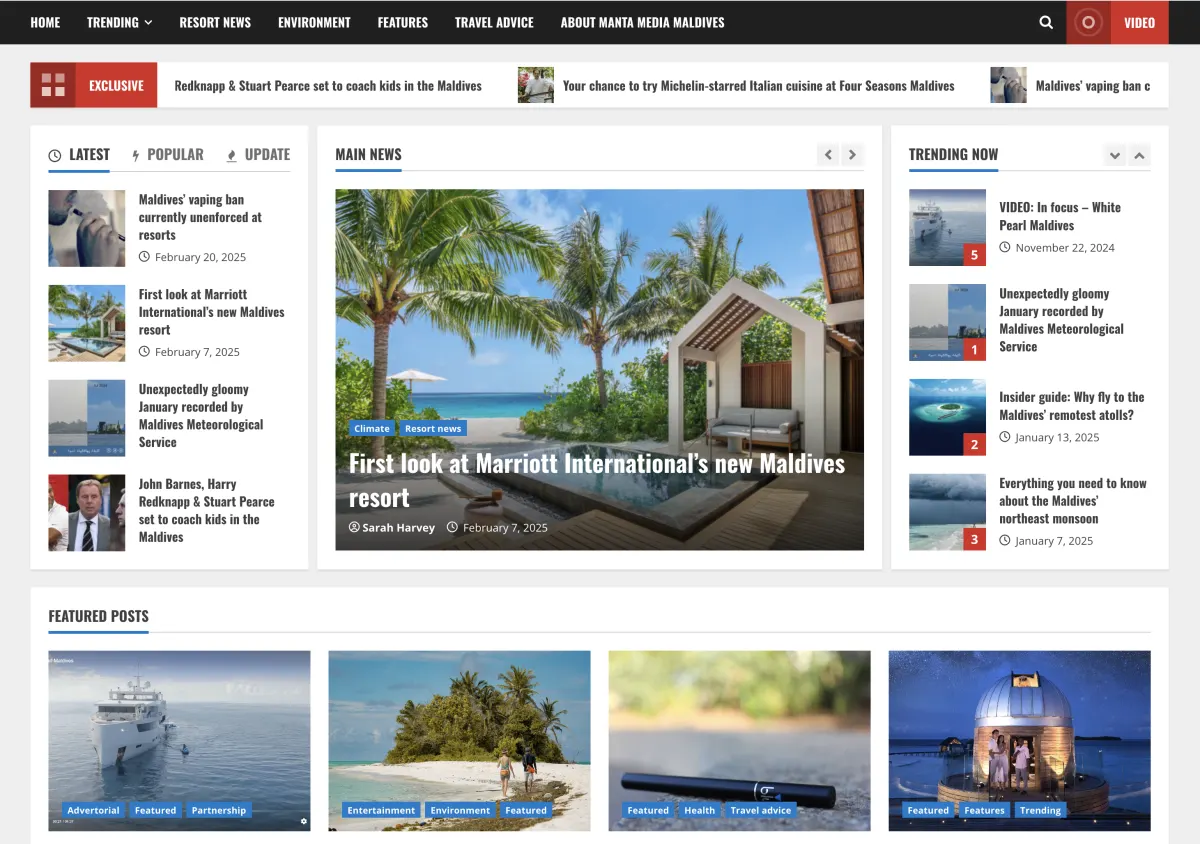 Manta Media Maldives is a travel news, features, and advice website focussing on the Maldives.