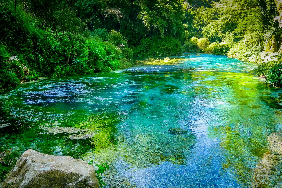 A natural water spring in Southern Albania with crystal clear turquoise waters